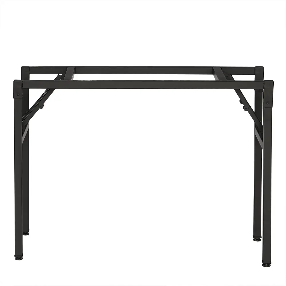 The base of the table is a black powder-coated steel frame, which not only protects it from corrosion and damage, but also gives it an elegant matt finish. The 1.2mm thick steel construction provides stability and load resistance, and the ability to fold the frame makes the table easy to store and transport. The legs are fitted with plastic feet to protect the floor from scratches and ensure the furniture is stable even on delicate surfaces.