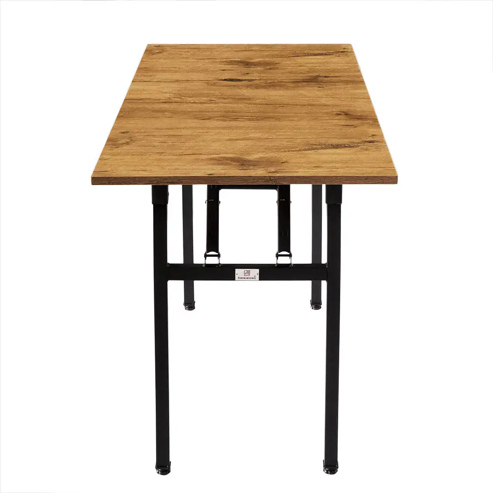 Measuring 140×60 cm, this conference banquet table is the perfect combination of modern loft-style aesthetics and the functionality expected of furniture for offices, meeting rooms or event spaces. The sturdy black steel frame emphasises the industrial character of the structure, while the top in lancelot oak colouring adds elegance and natural warmth. As a result, this piece of furniture fits perfectly in both modern offices and home offices, where it can serve as both a conference table and a practical desk.